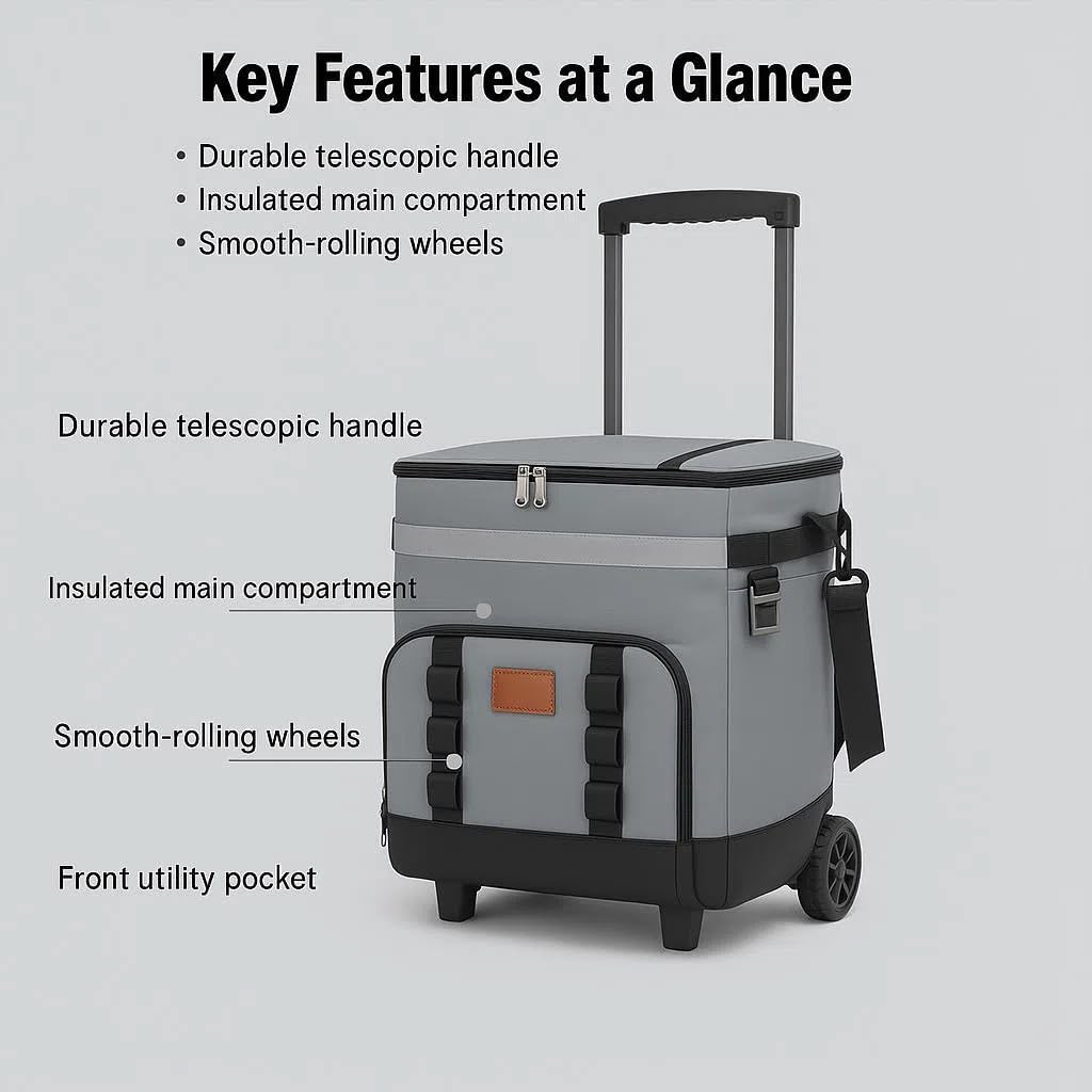 | Additional Features | Insulated, Leak Proof, Portable, Wheeled |