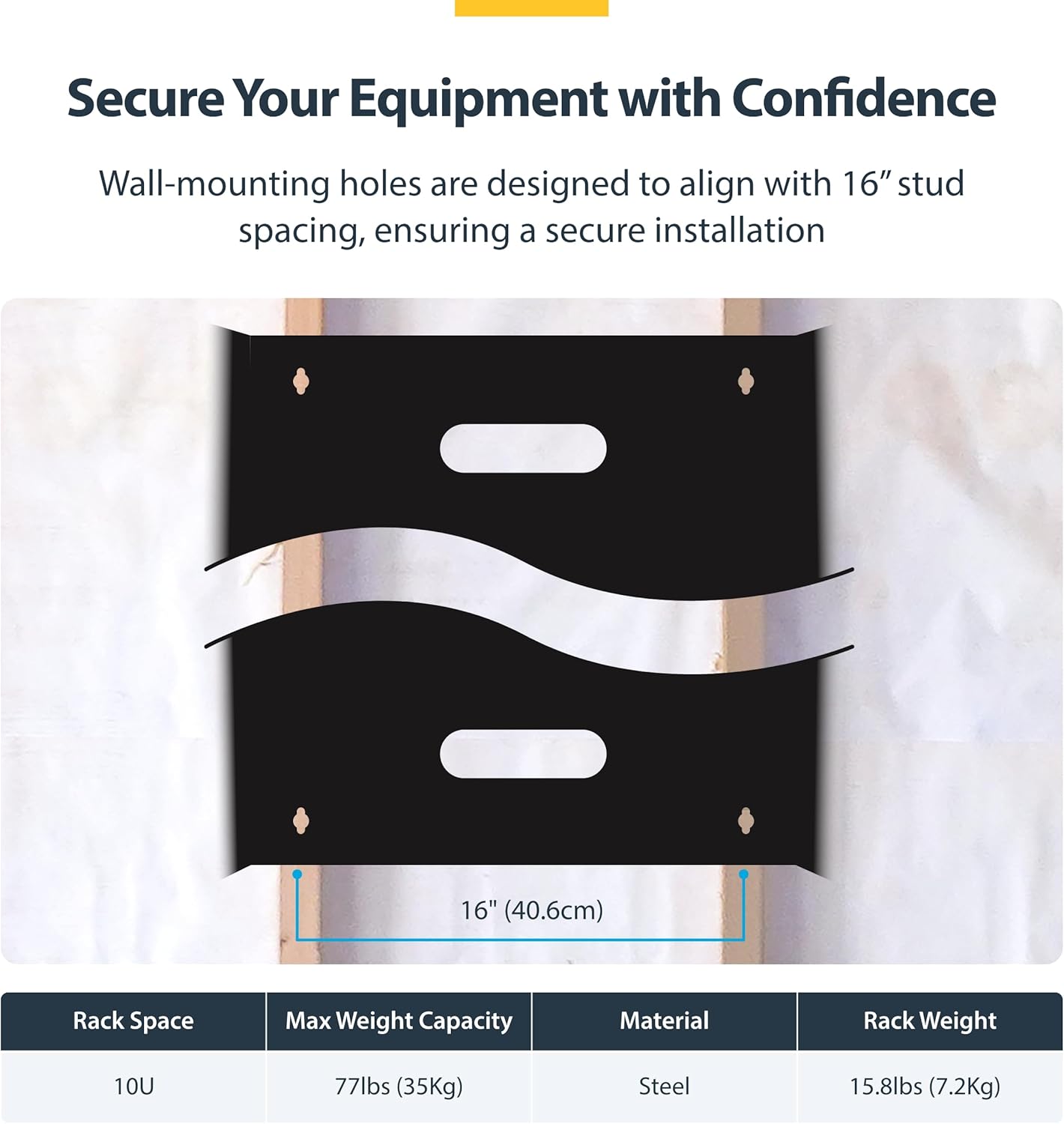 The RACK-10U-14-BRACKET 10U 13.78 in. Deep Wall Mounting Bracket for Patch Panel delivers a sturdy and dependable equipment storage option, allowing you to wallmount equipment for a more efficient and accessible operating environment. The mounting bracket features an all-steel design and is suitable for mounting patch panels, or other slim 19in equipment to a wall.
